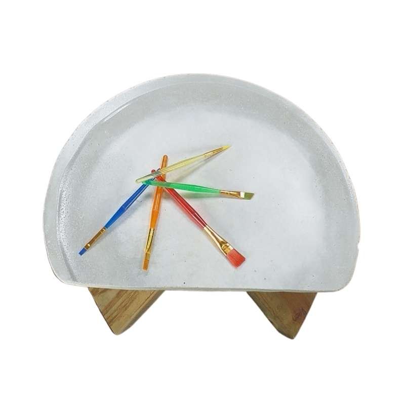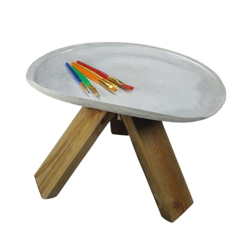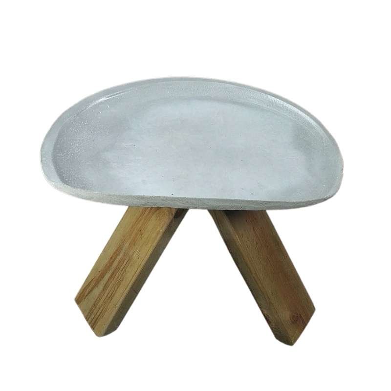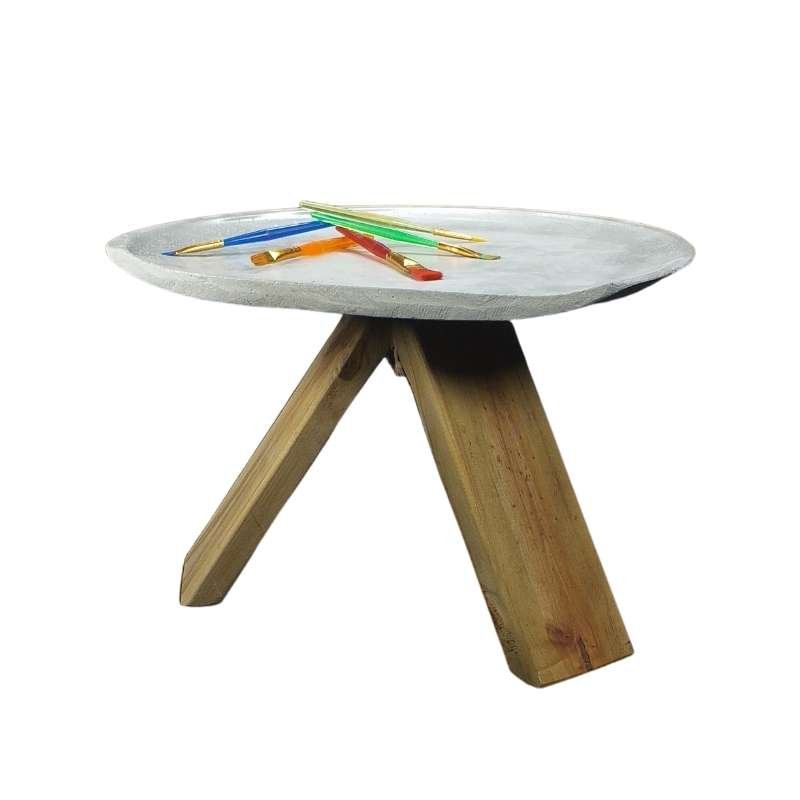 Butaco superficie concha en concreto graduable en altura con base en trípode de madera