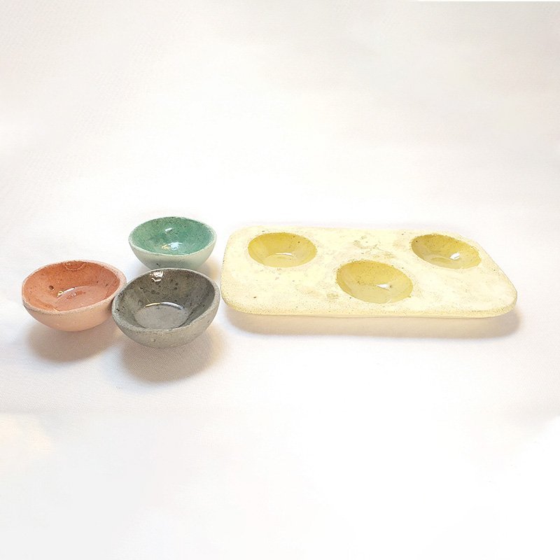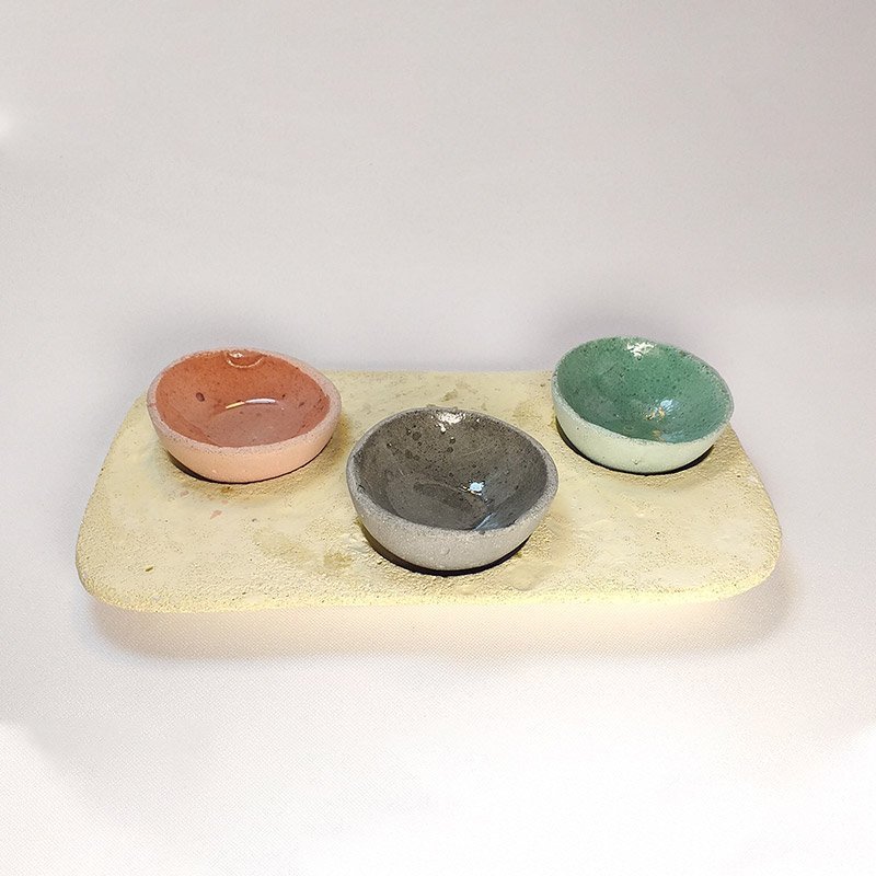 Salsero bandeja en concreto terrazo y 3 contenedores