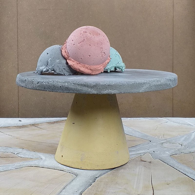 Tortera en concreto  con base cónica y cubierta en cristal